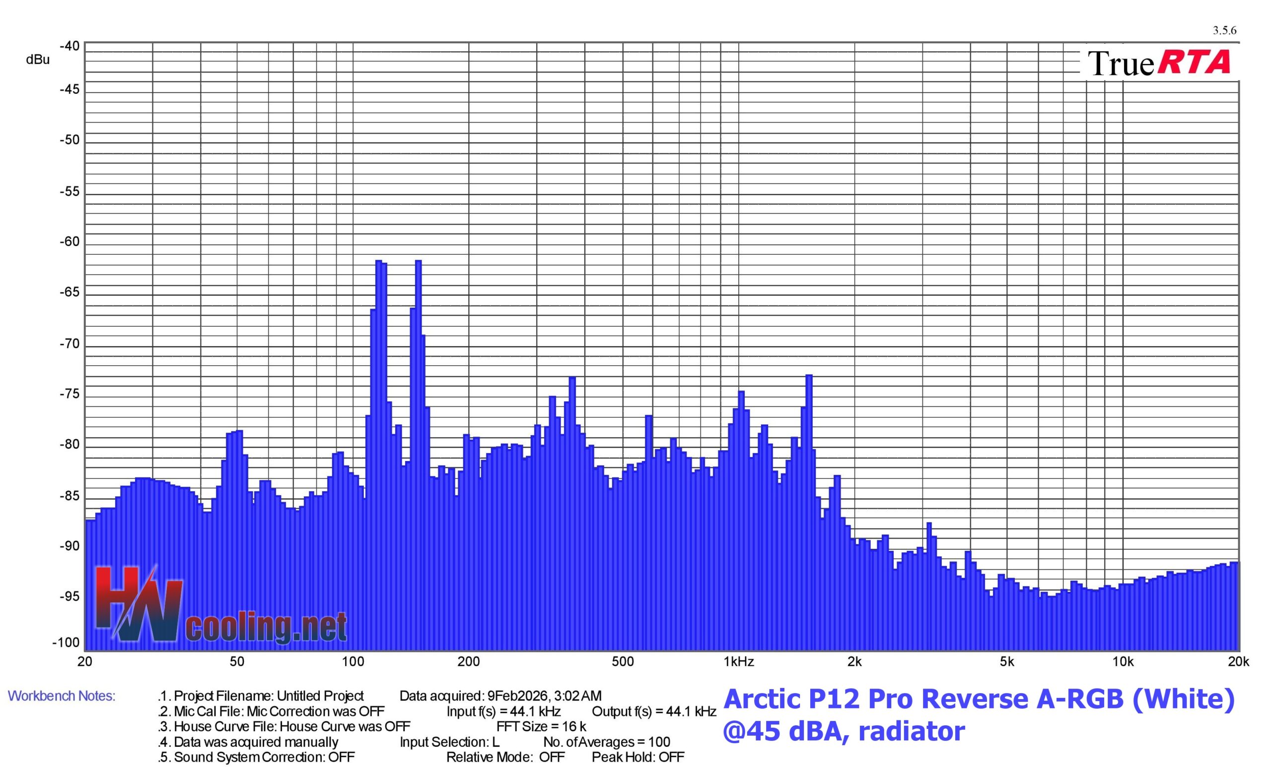| Arctic P12 PWM PST A-RGB | 142,5 | -71,3 | 1140,4 | -72,4 | 3133,6 | -89,2 | |