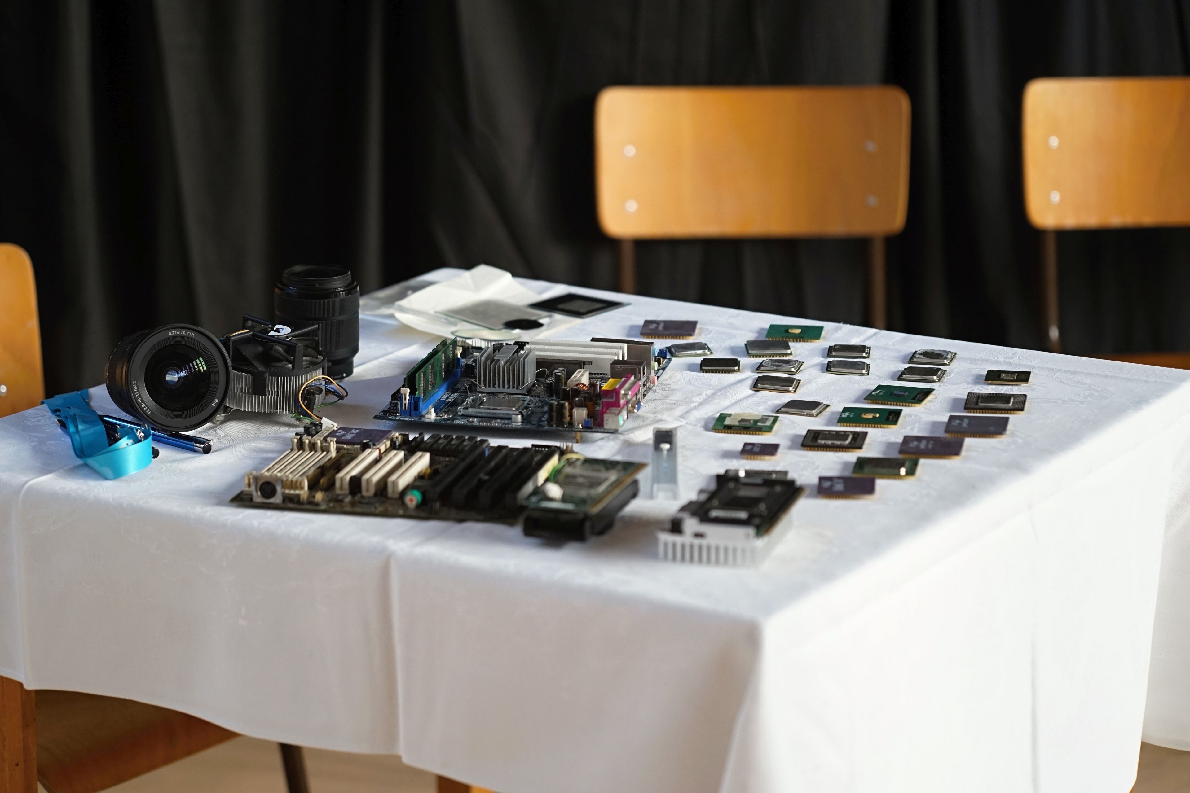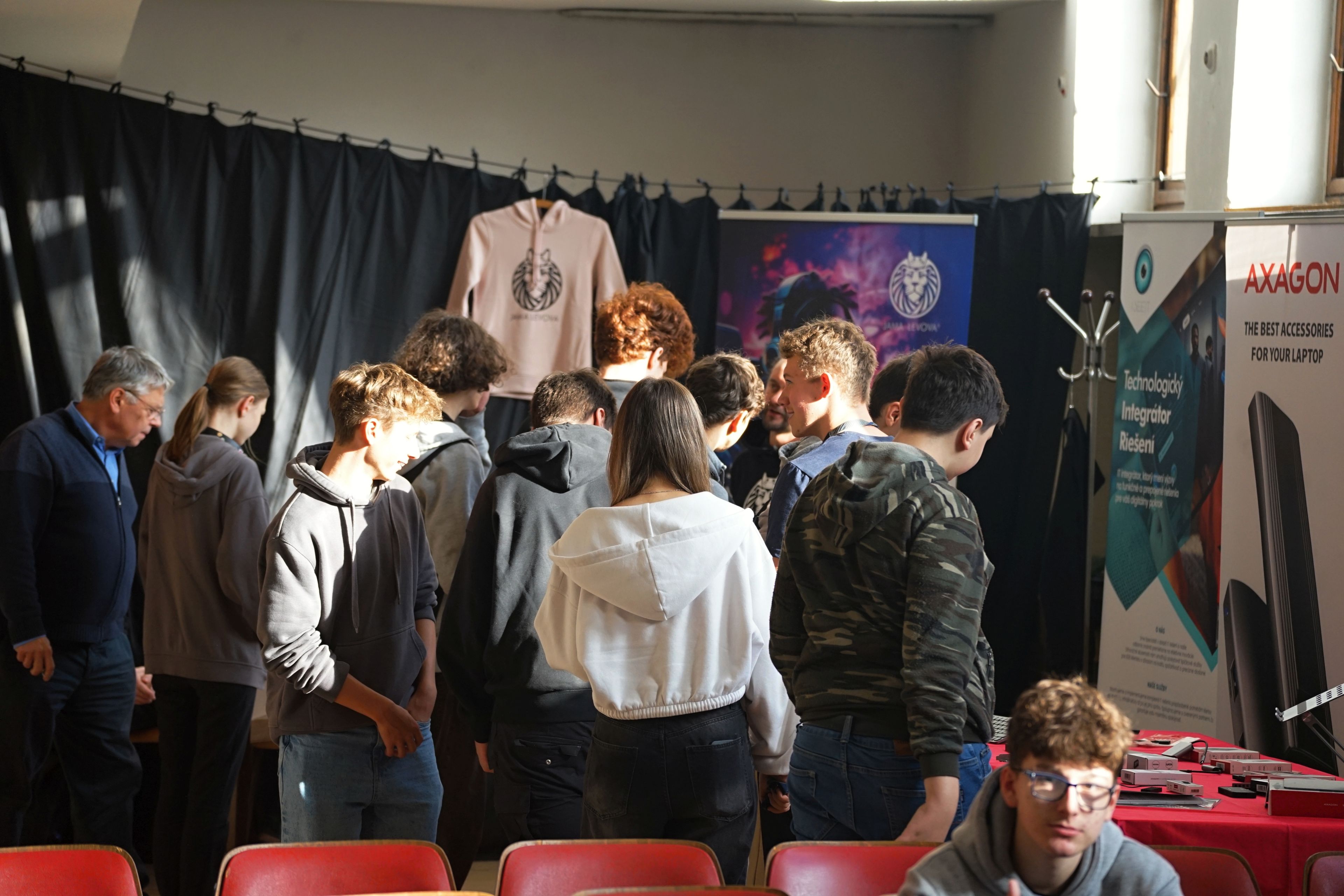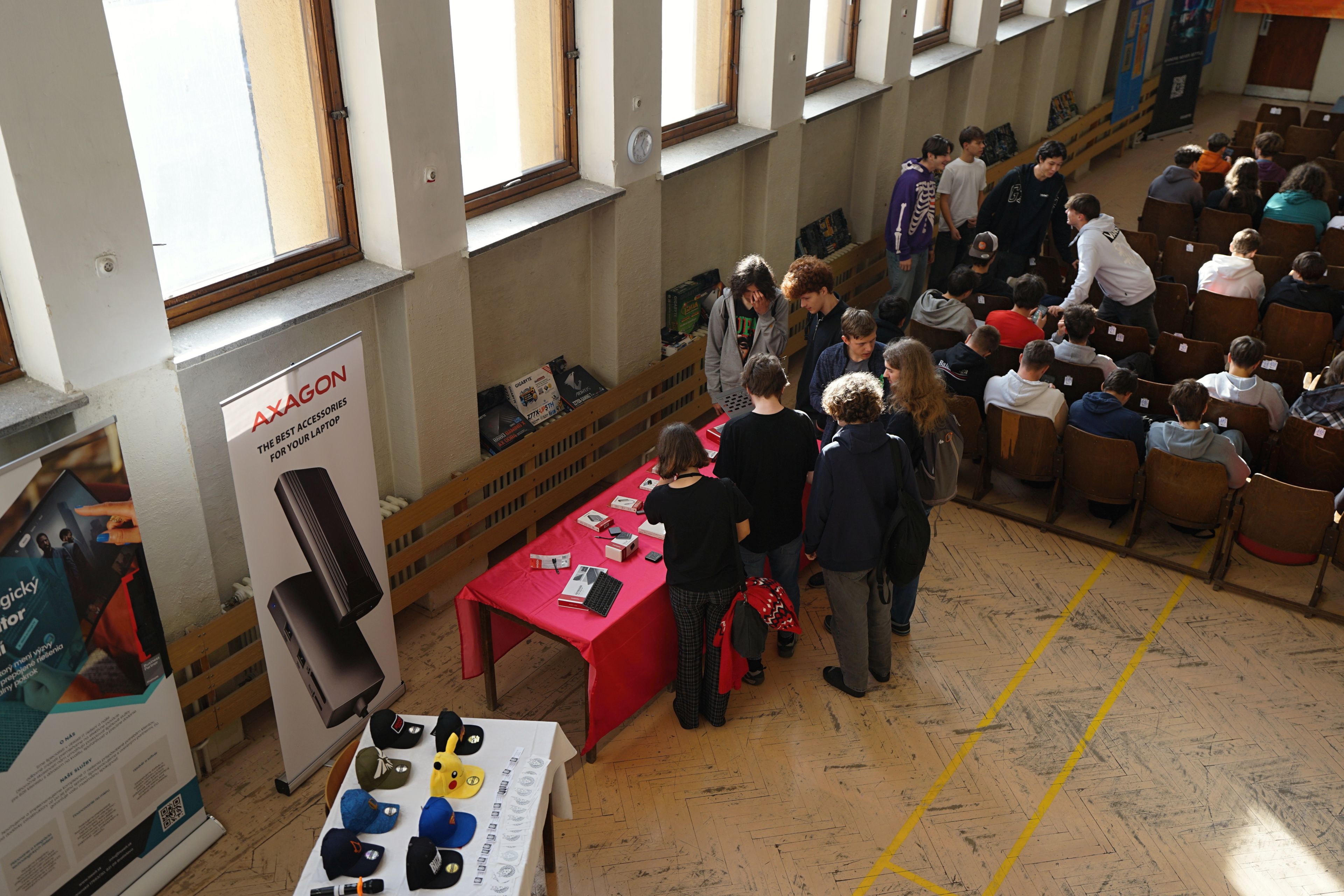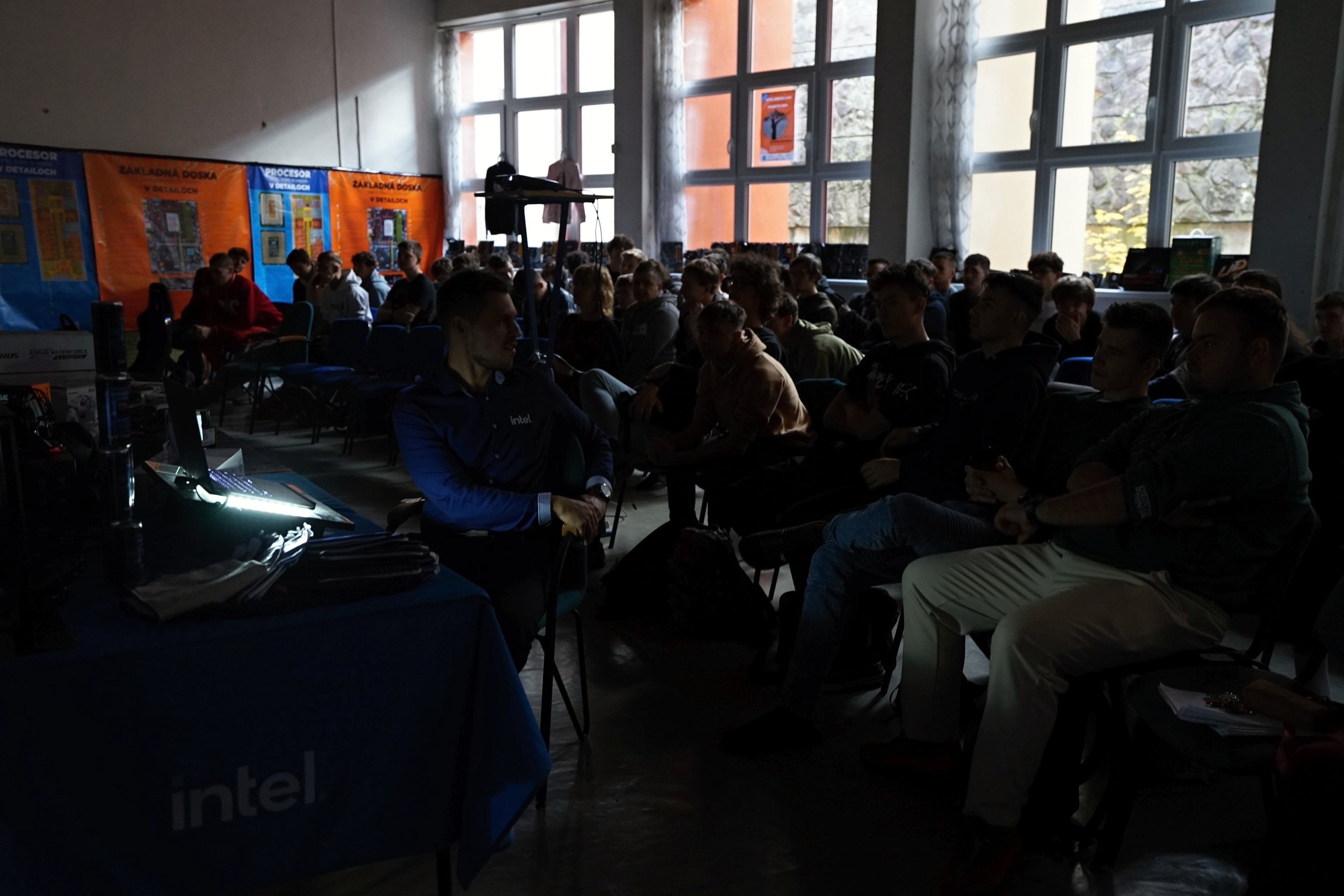 Na mieste sme, prirodzene, mali veľa produktov/PC komponentov, ktoré sú predmetom kúpy a predaja a áno, jednou z firiem bol aj obchod (Datacomp). Ale ten tam bol hlavne pre to, aby sme žiakov za ich preukázané vedomosti a zručnosti vedeli odmeniť hodnotnými cenami, z ktorých budú mať radosť. A ktoré v nich môžu rozhorieť ešte väčší oheň. Pre všetkých žiakov, to už ako magazín HWCooling, sme pripravili, vyrobili a dodali napríklad aj veľkoplošné plachty s detailným rozborom jednotlivých súčastí procesora a základnej dosky. To je niečo, čo na teoretickom aj praktickom vyučovaní chýba.