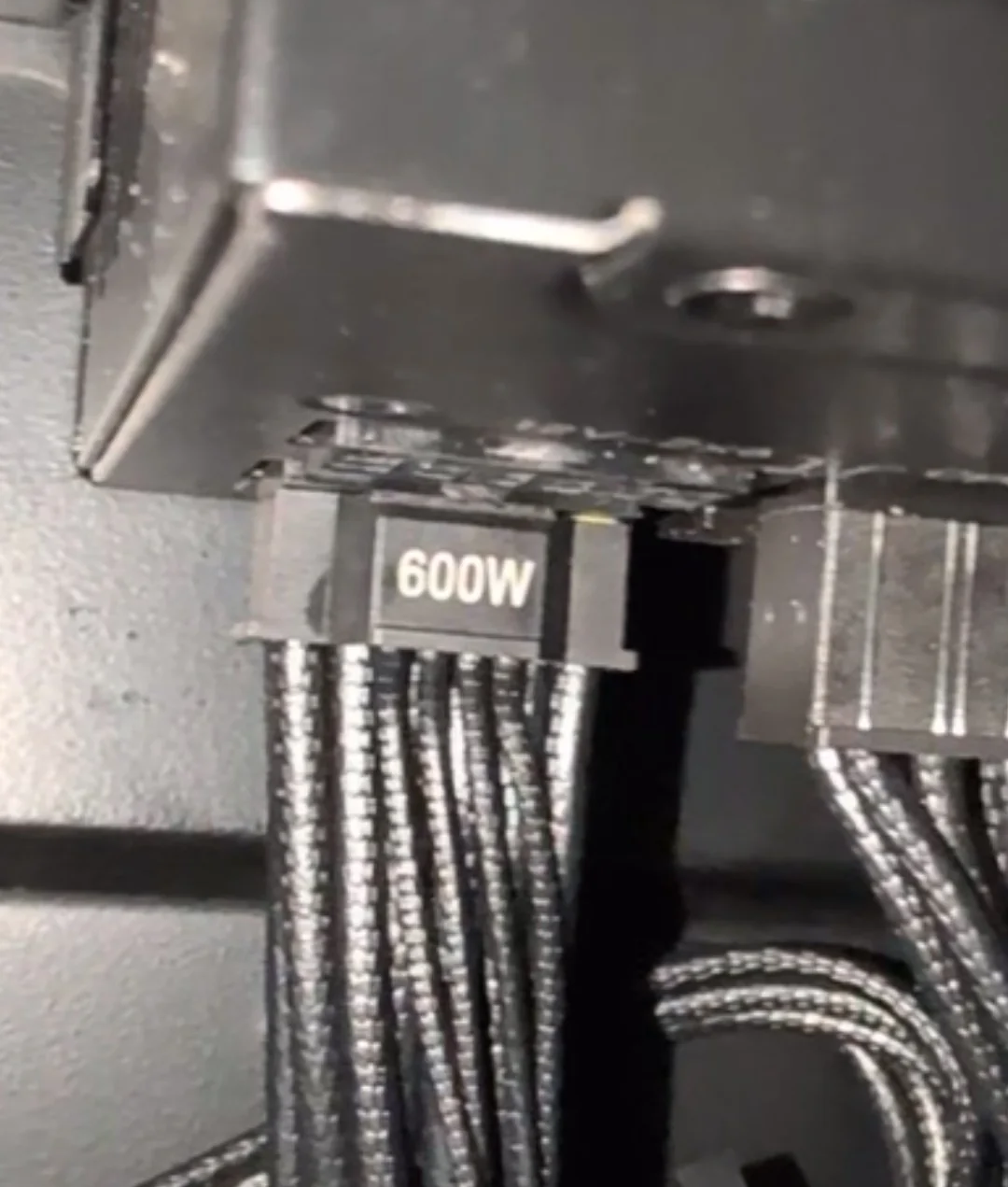 Samovolně vysunutý napájecí kabel kabel 12V-2×6 na straně u zdroje (Autor: SnooPaintings7769, Reddit)