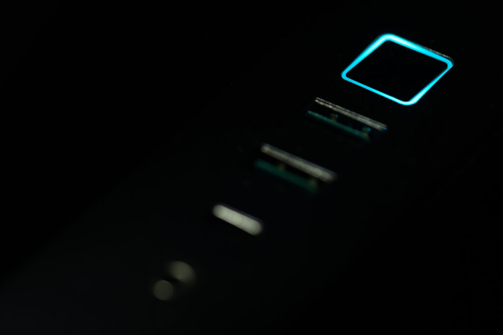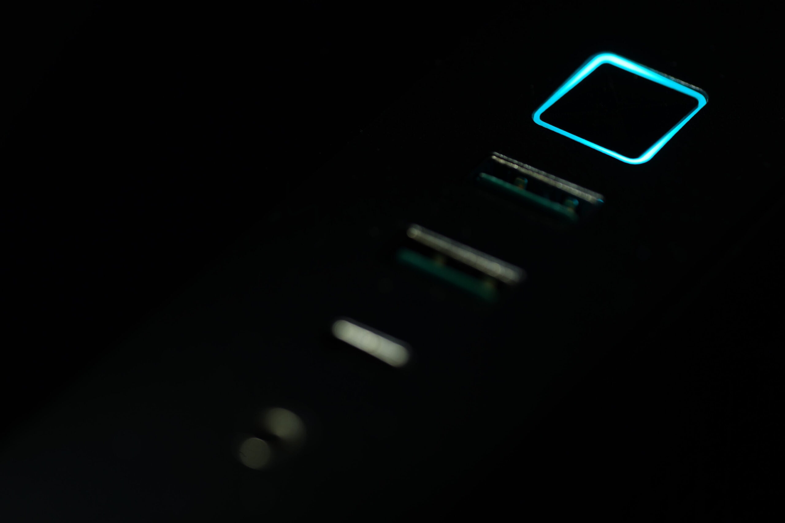 Indikačná LED je vyhotovená tak, že lemuje zapínacie tlačidlo, ktoré je dostupné zboku skrinky. Áno, v tyrkysovej farbe, ktorá DeepCool charakterizuje.