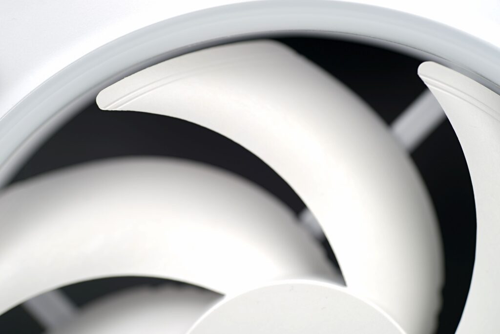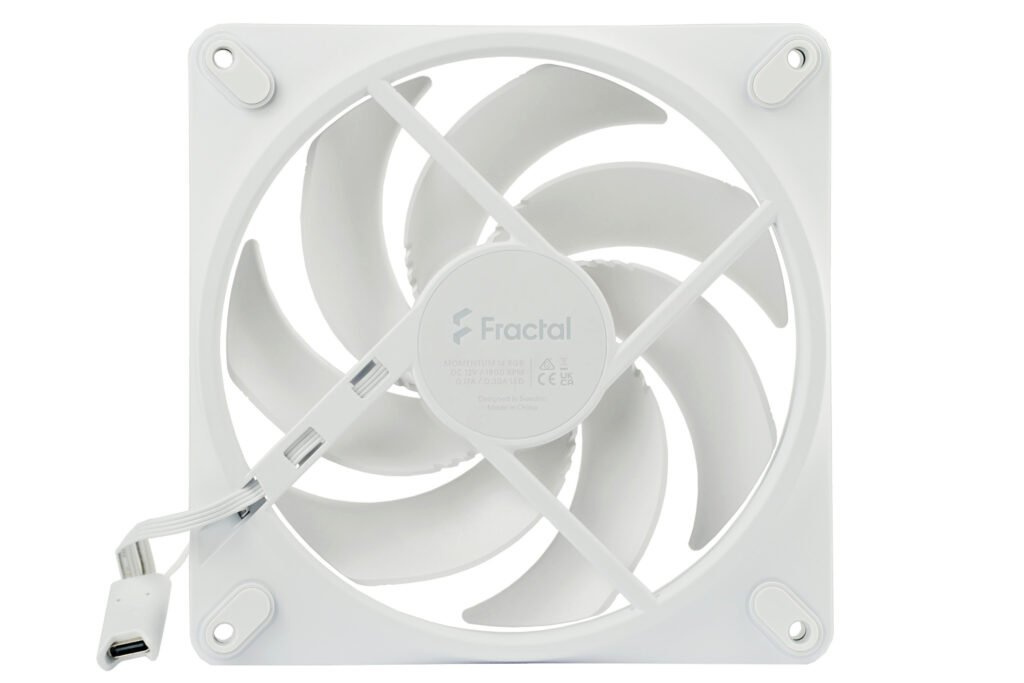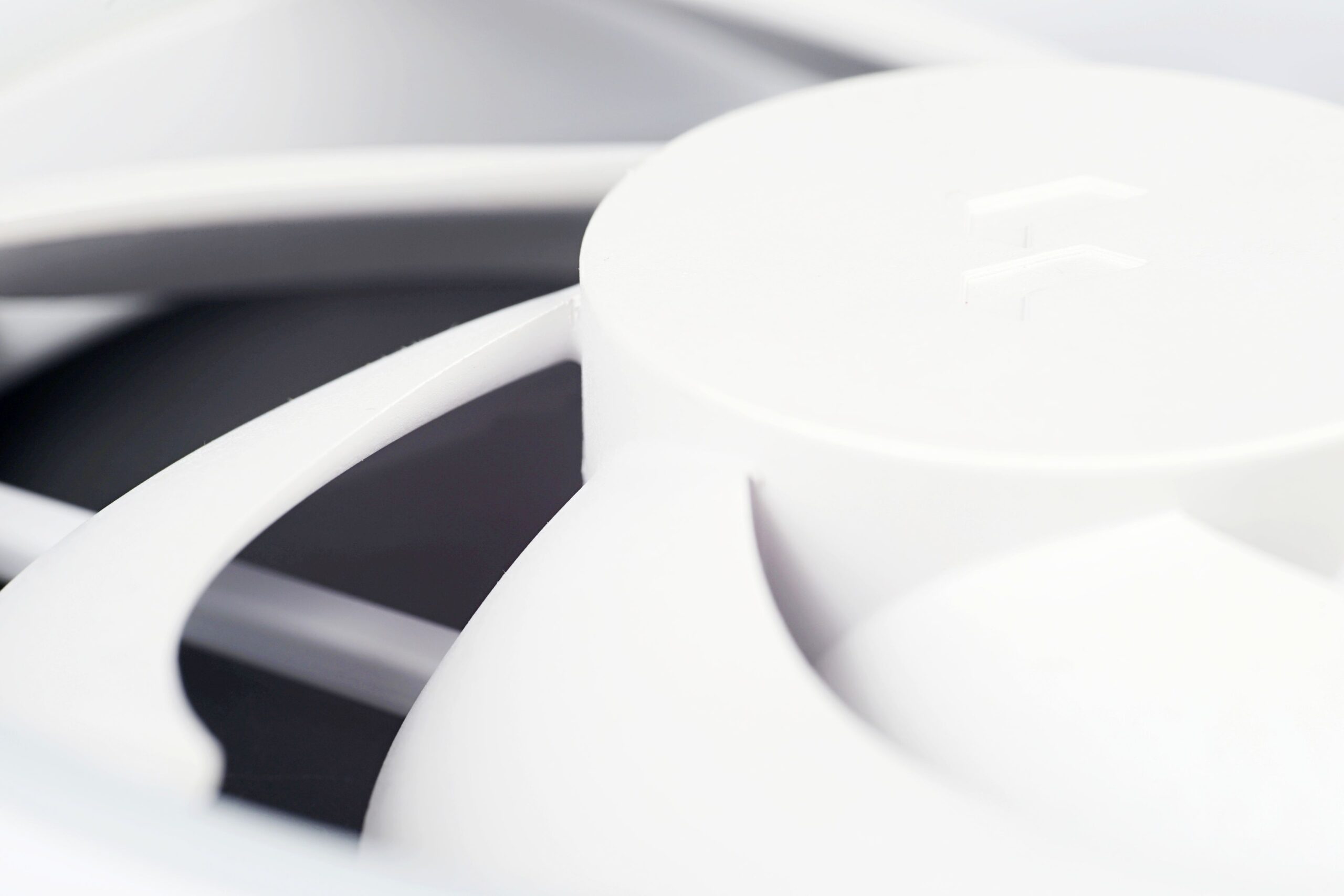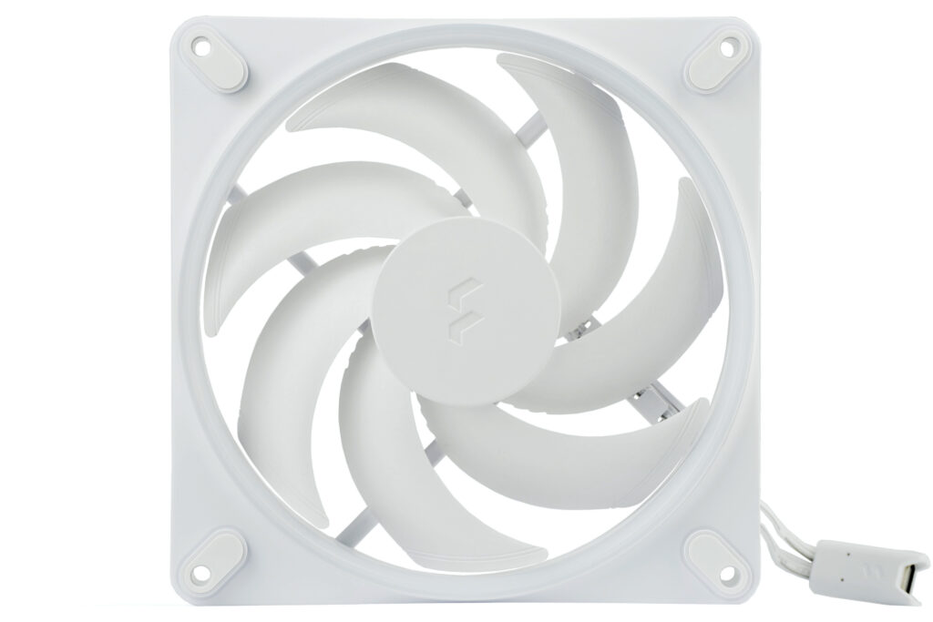 A spectacle – but in the best sense of the word. The FD Momentum 14 RGB are illuminated fans made from LCP, which is a rarity in itself. And when you factor in the white finish, you’re looking at something truly unique. But also practical—light reflects better off a white impeller (compared to “dark” competitors), and we haven’t even mentioned the main highlight yet: an efficient geometry that contributes to what are essentially unparalleled results.