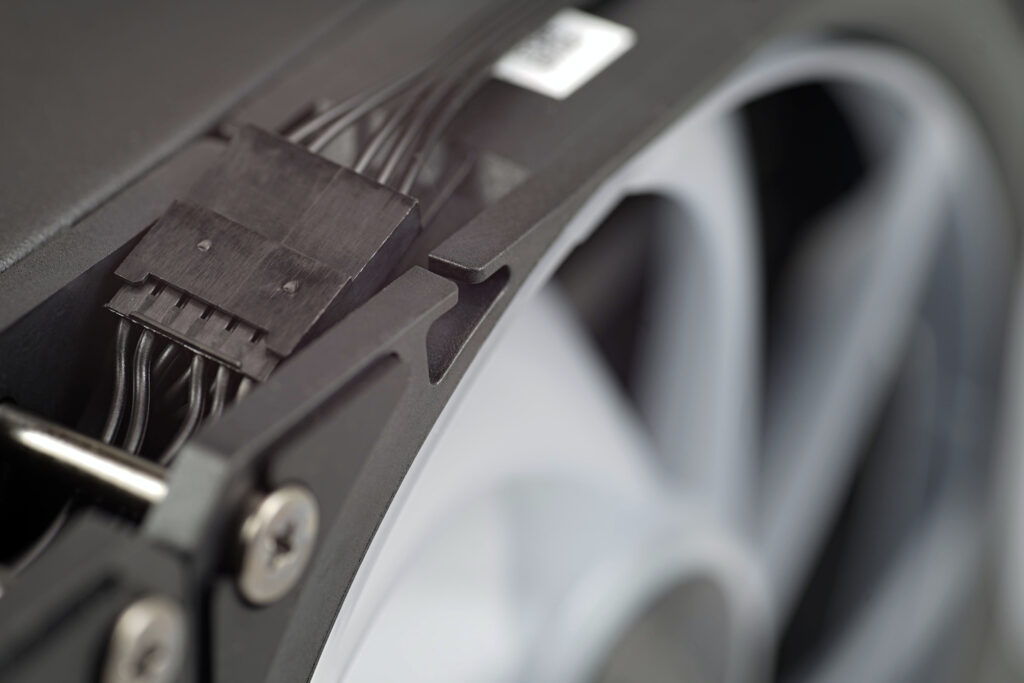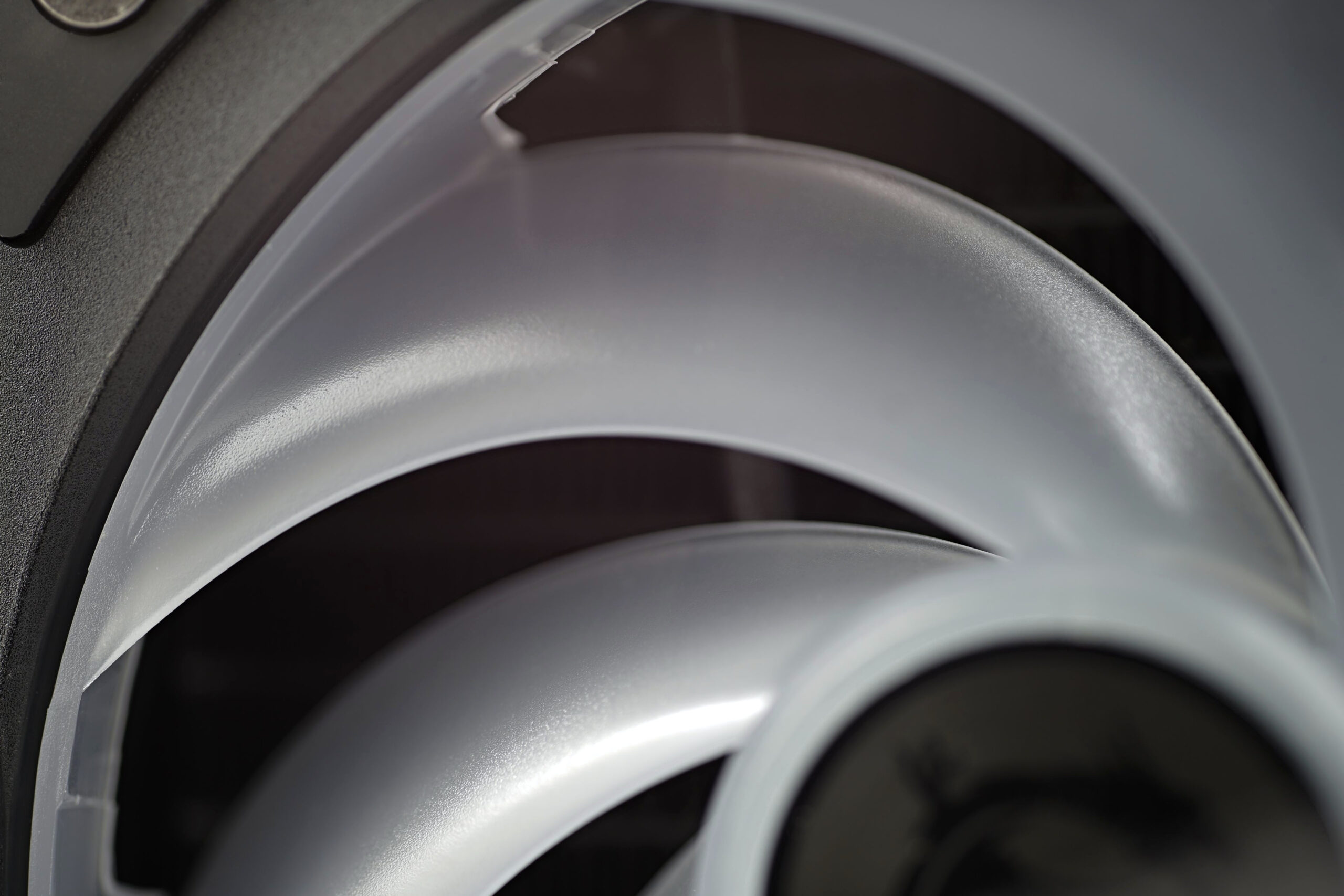 Where it does differ is in the fans. These often determine how effective the cooling will be when radiators of the same size and fin density are used, provided fluid flow is not the limiting factor. And the fans here look impressive—a modern aerodynamic design with seven blades reinforced by a unifying ring. That ring plays an important role in reducing unwanted tip vibrations.