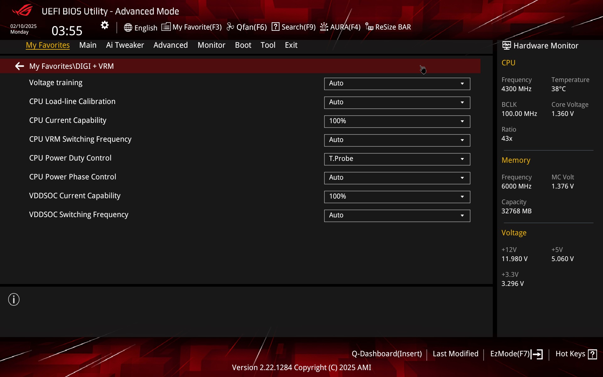 We do not interfere with the VRM operation management settings and the LLC thus remains in the factory settings for testing purposes as well.