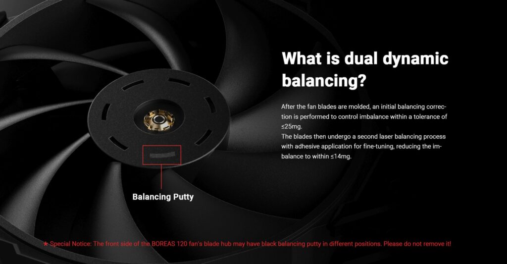 Balancing rings are used for final impeller calibration, similar to wheel balancing in motor vehicles during geometry checks. While wheels—or even other high-end fans that perform such geometry checks—may feature a similar system (for example, ID-Cooling Boreas), Phanteks likely performs this process more meticulously.