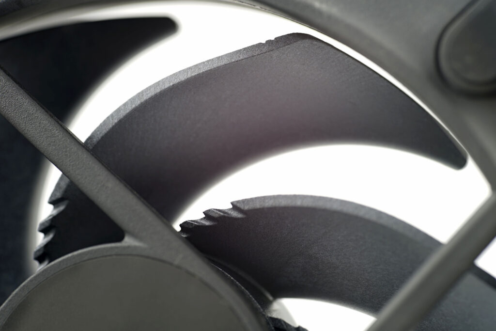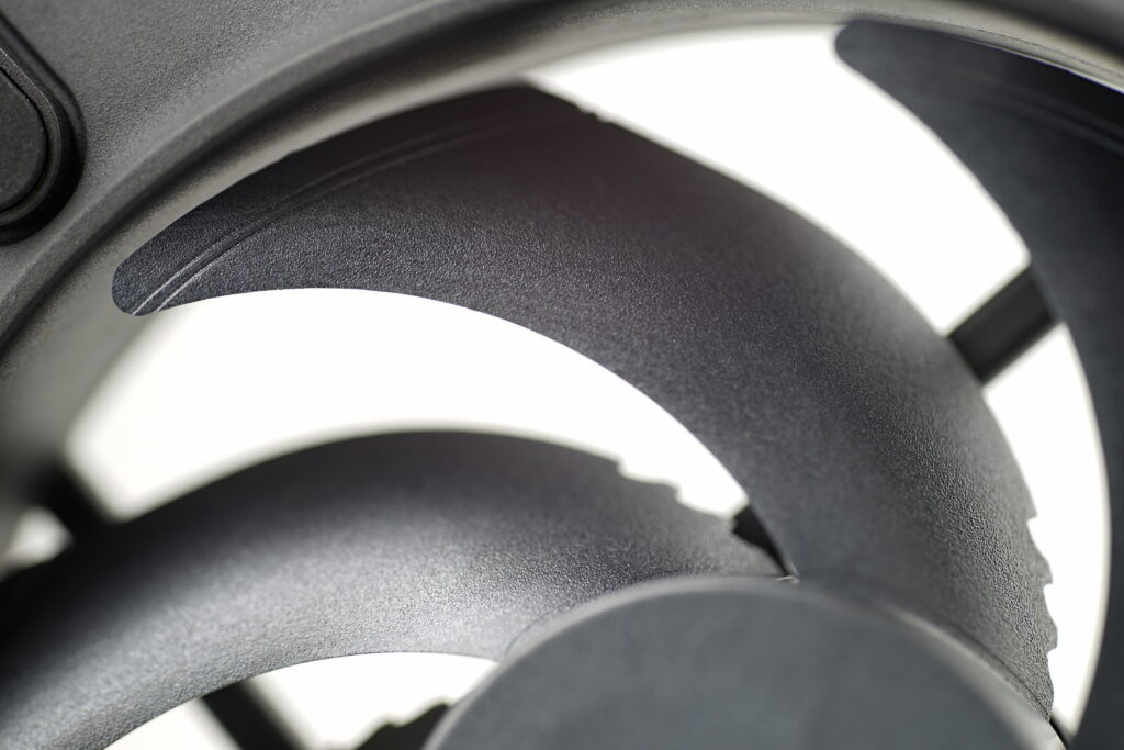Cut-outs or notches (call them what you like…) have returned to the trailing edge of the blades near the impeller hub – a feature not used on the Aspect fans, but present in older models like the Dynamic X2.