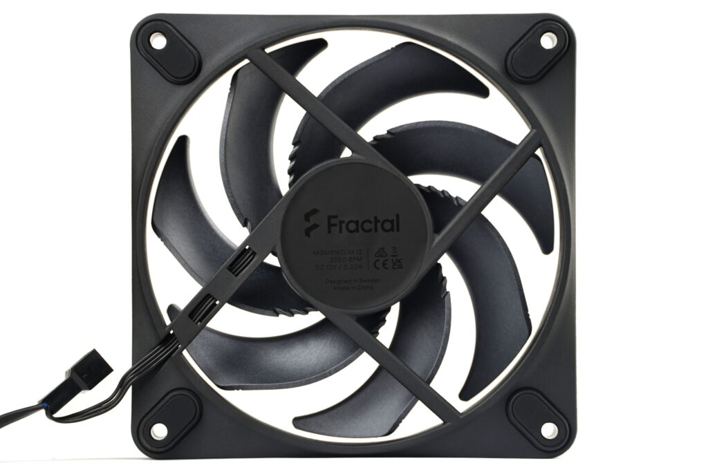 For a long time, Fractal Design didn’t have fans with impeller geometry that looked “efficient” at first glance. Now come the Momentum fans, which finally do, and the improvement (compared to Aspect models) is clear. This puts the competition on alert, and more importantly, it finally opens up the potential to improve FD’s coolers and cases on the fan level. We’re starting off by testing the most affordable 120 mm model – the Momentum 12.