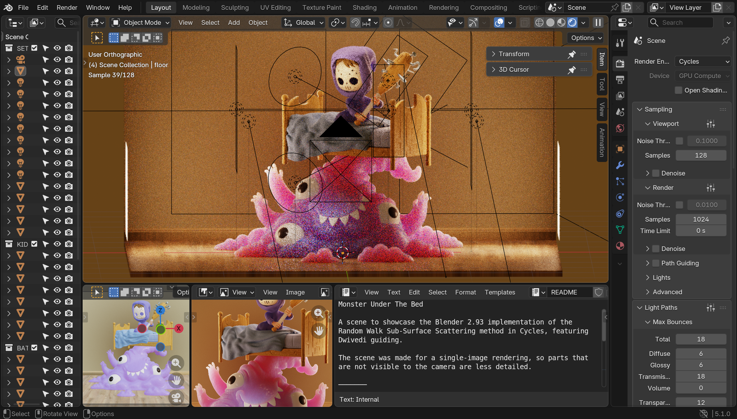 Blender přitom umožňuje kreativní práci jak na modelech a objektech pro určitou scénu, tak jejich aranžování do komplexních scén, až po finální render do požadovaného výstupu. Jde o celistvé řešení.