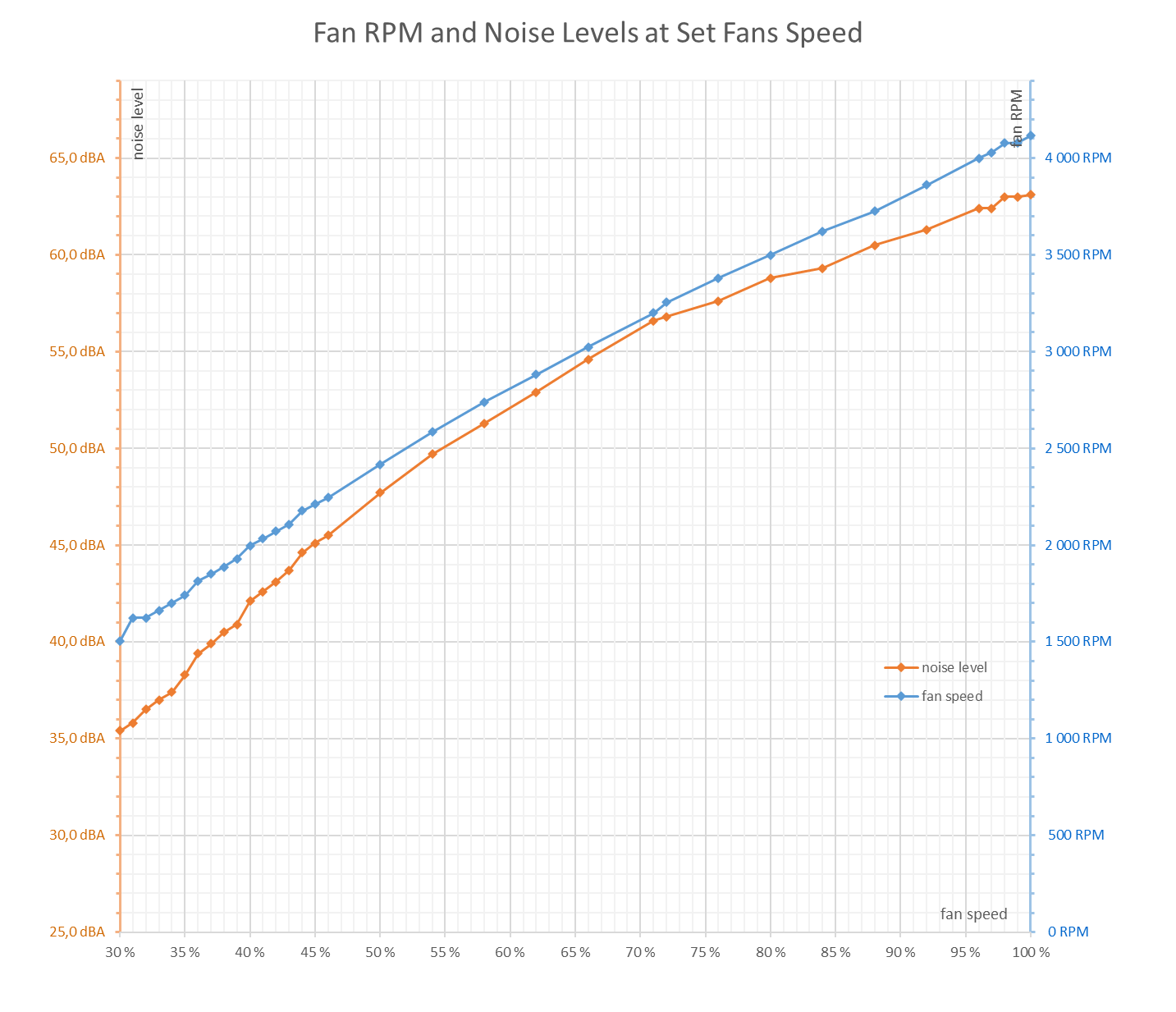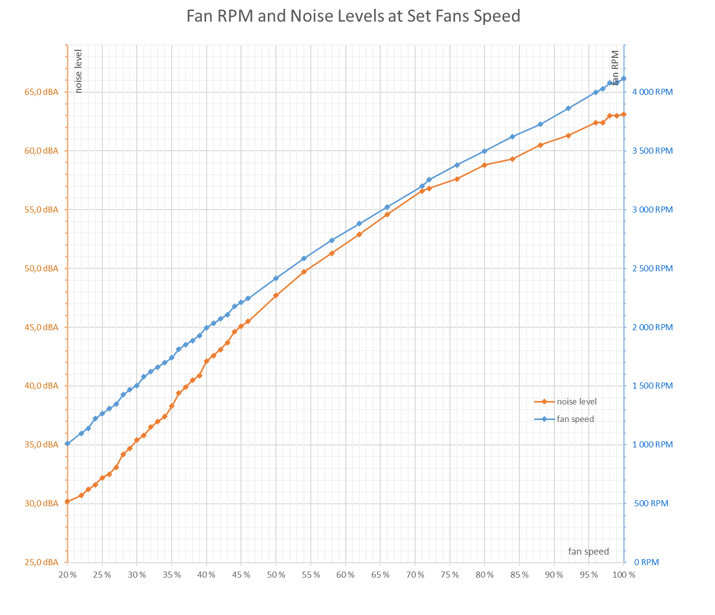 Je to ale vykoupeno vyššími otáčkami ventilátorů, dostávají se k 1700 ot./min. Při podobném výkonu už jsou slyšet, ale nedá se říct, že by byly hlučné.