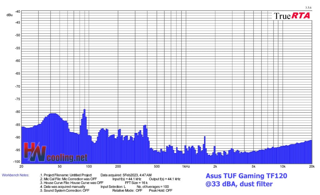 | Fan | Dominant sound freq. and noise level, dust filter@33 dBA | NF-F12 PWM | NF-A15 PWM | ||||