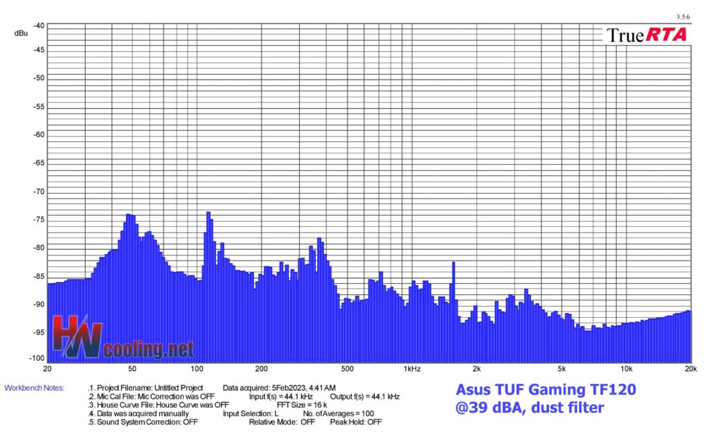 | Fan | Dominant sound freq. and noise level, dust filter@39 dBA | NF-F12 PWM | NF-A15 PWM | ||||