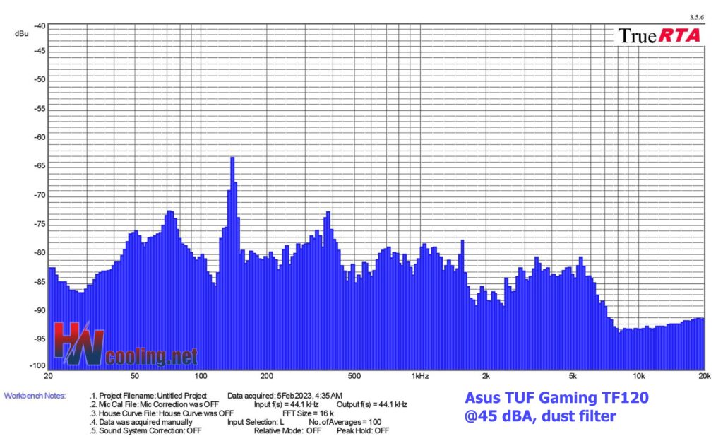 | Fan | Dominant sound freq. and noise level, dust filter@45 dBA | NF-F12 PWM | NF-A15 PWM | ||||